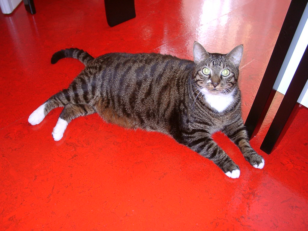 Hugo kam im Tierheim sofort auf uns zu und ließ sich sofort streicheln. Er brauchte überhaupt keine Eingewöhnungszeit und war ein richtiger Schmusekater. Hugo kannte genau die Uhr und machte uns rechtzeitig auf die Fütterungszeiten aufmerksam. Da er schon bei seiner Ankunft in unserer Wohnung ein zu hohes Gewicht auf die Waage brachte, versuchten wir mit abgewogenem Spezialfutter ihn hiervon herunterzubringen, zumal im November 2004 eine angegriffene Niere festgestellt wurde.