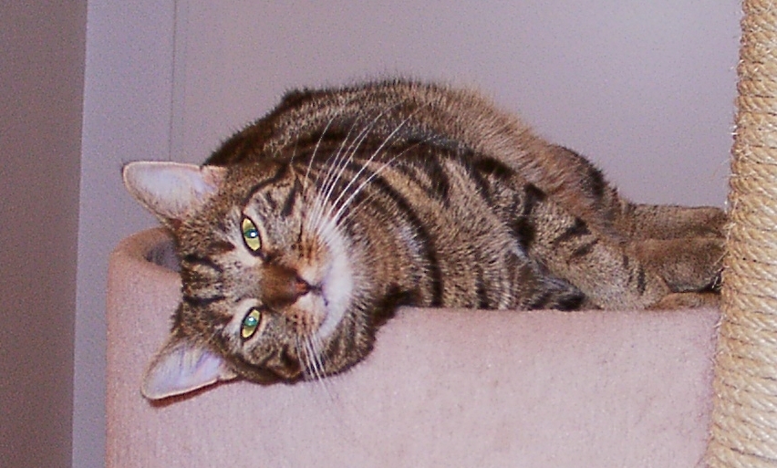 Abby ist nach ihrem Impfpass am 11.9.1998 geboren und kam zu einem Bekannten, der viel zu früh starb. Wir übernahmen Abby am 13.8.2009. Bei jeder Gelegenheit versuchte sie, gestreichelt zu werden. Sie fand bequem Platz auf unserem Arm und schnurrte laut. Als Abby nicht mehr fressen wollte, stellte unser Tierarzt Krebs fest. Wir mußten Abby am 7.5.2015 einschläfern lassen.